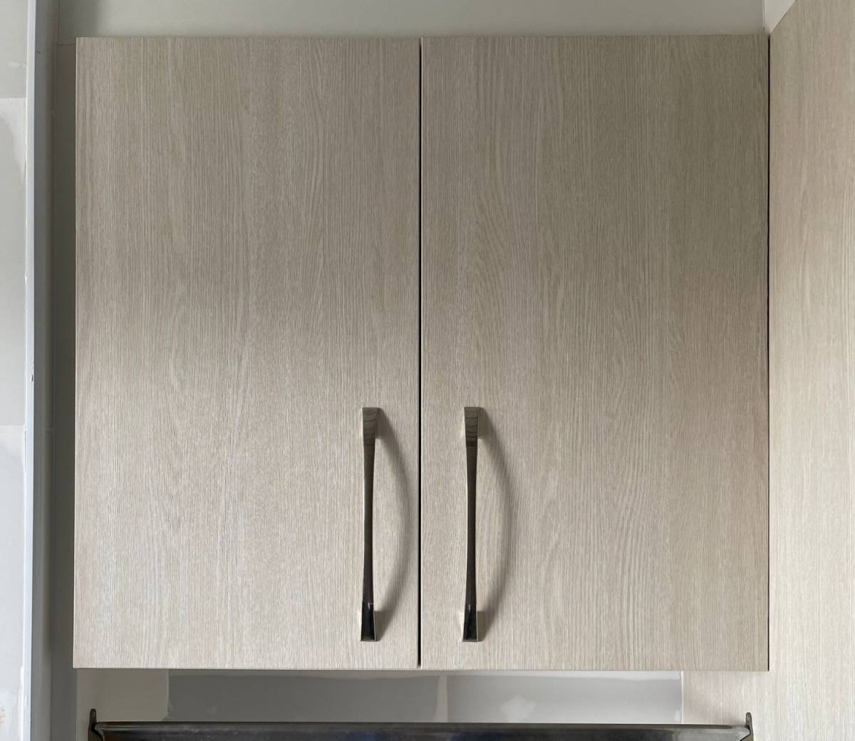 Nesta lavanderia, o revestimento de vinil autoadesivo foi aplicado nos móveis e paredes.