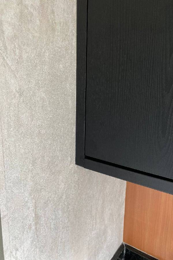 Neste projeto, o Felipe e o Régia do @casacomdois decidiram repaginar totalmente a lavanderia através de uma reforma seca. O revestimento de vinil autoadesivo da SH Decor Brasil pode ser aplicado com segurança em áreas molhadas, uma vez que é feito de PVC. A única recomendação, é que todas as extremidades sejam perfeitamente vedadas, evitando assim, qualquer tipo de infiltração, você poderá usar silicone ou rejunte acrílico ou epóxi.